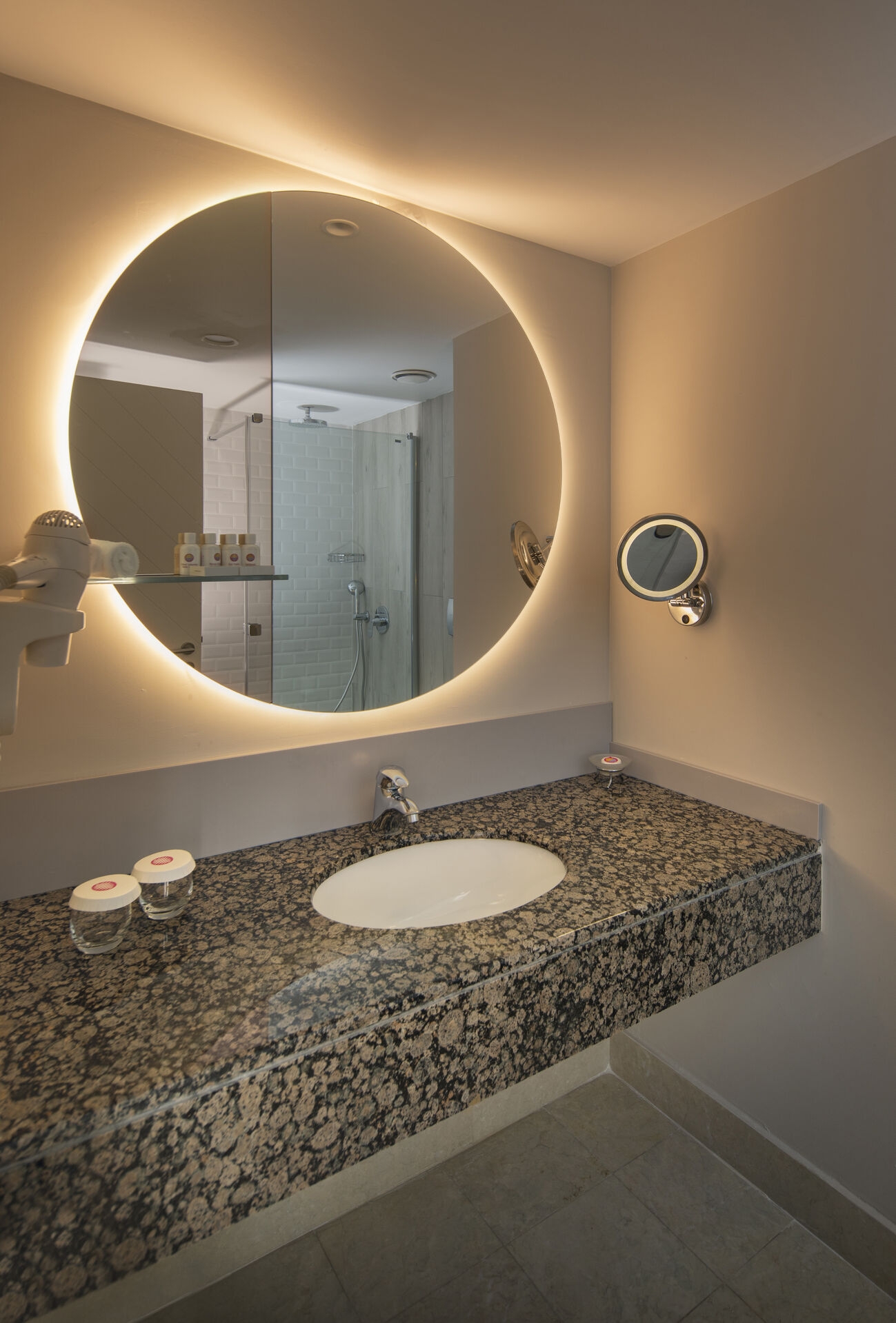 balkón alebo terasa (možnosť izieb bez balkóna) • individuálna klimatizácia • kúpeľňa so sprchou alebo vaňou • Wi-Fi (zdarma) • sušič vlasov • župan a papuče • LCD TV • minibar • trezor • telefón • servis na prípravu čaju a kávy.