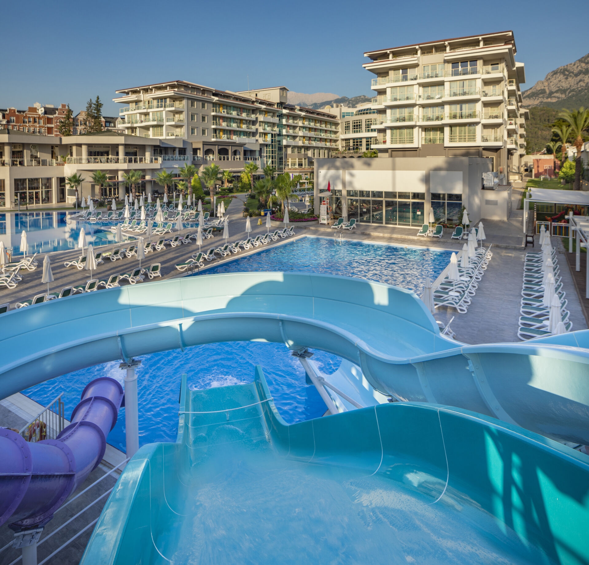 hotelový komplex priamo na súkromnej pláži s mólom • cca 600 m od centra letoviska • centrum mesta Antalya cca 45 km • medzinárodné letisko cca 55 km