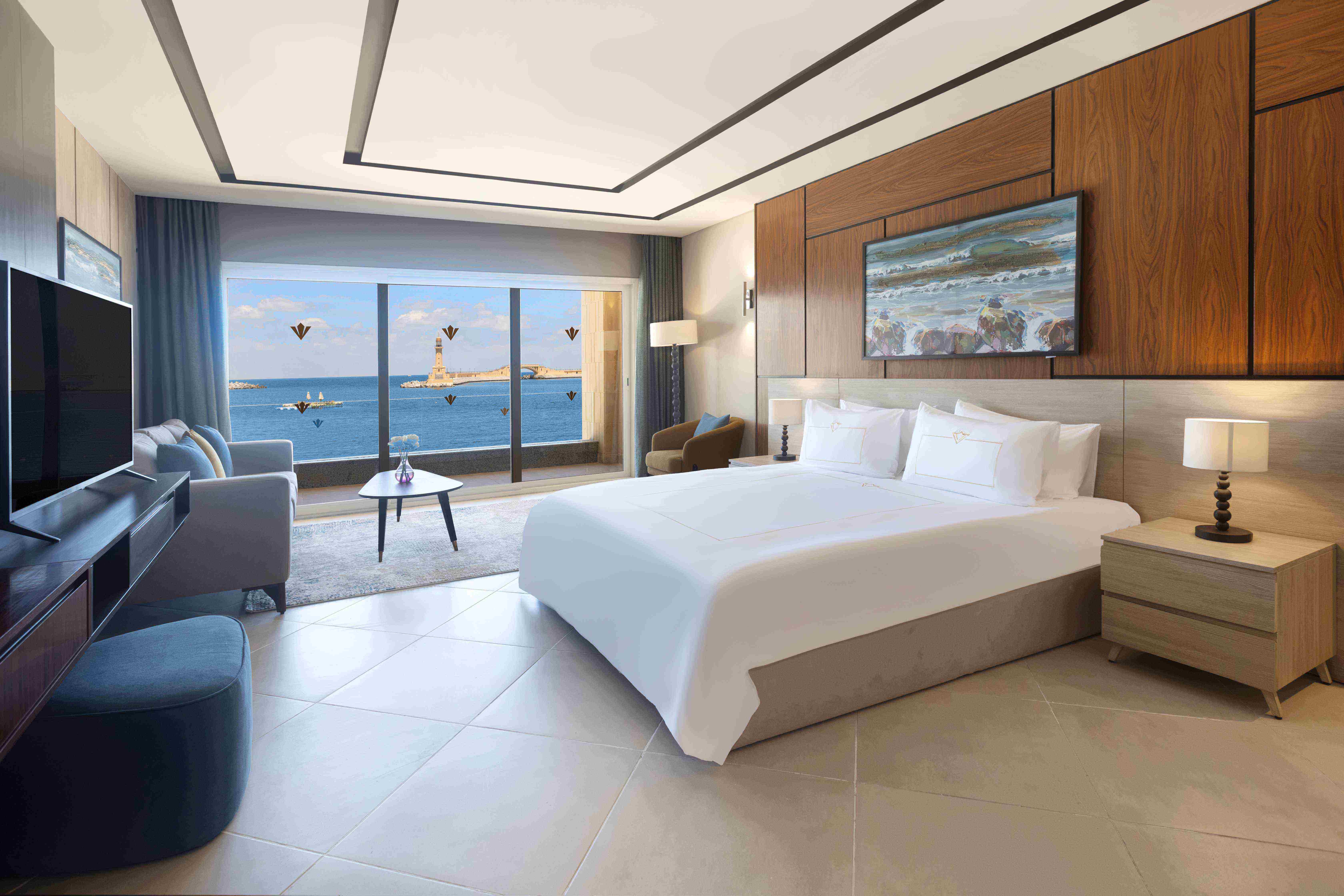 nachádza sa v exkluzívnej časti Montaza v Alexandrii • priamo pri súkromnej pláži s jemným pieskom • 17 km od historického centra Alexandrie •187 km od medzinárodného letiska El Alamein • transfer do Alexandrie cca 2,5h • 235 km od Káhiry
