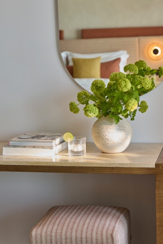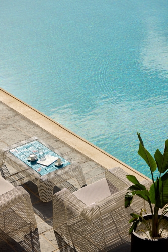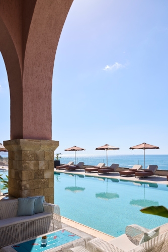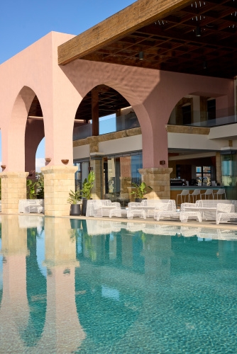 Room superior deluxe sea view (30 m2, pre 2-3 osoby, terasa, výhľad na more) • Junior Suite so súkr. bazénom (30 m2, pre 2 soby, terasa so súkromným bazénom) • Superior Junior Suite so súkr. bazénom SV (37 m2, pre 2-3 osoby, terasa s posedením a súkr. bazénom, výhľadna more)  Superior Junior Suite so súkr. bazénom upper floor (37 m2, pre 2-3 osoby, terasa s posedením a súkr. bazénom, výhľad na more) • Mediterranean suita (44 m2, pre 2 osoby, terasa s posedením a súkr. bazénom, výhľad na more) • Executive Suite SV so súkr. bazénom (59 m2, pre 2-4 osoby, spálňa a obývacia miestnosť, terasa s posedením a súkr. bazénom, výhľad na more)