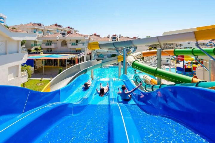 300 izieb • lobby s recepciou • 24h lobby bar (00:00-10:00h za poplatok) • Wi-Fi (zdarma) • vonkajšie bazény • vnútorný bazén • bazén s tobogánmi • hlavná reštaurácia • a la carte reštaurácia • bary • cukráreň • čerstvé šťavy (za poplatok) • spa centrum (za poplatok) • fitness • animácie • obchody • lekár (za poplatok) • kozmetické centrum (za poplatok) • konferenčná miestnosť