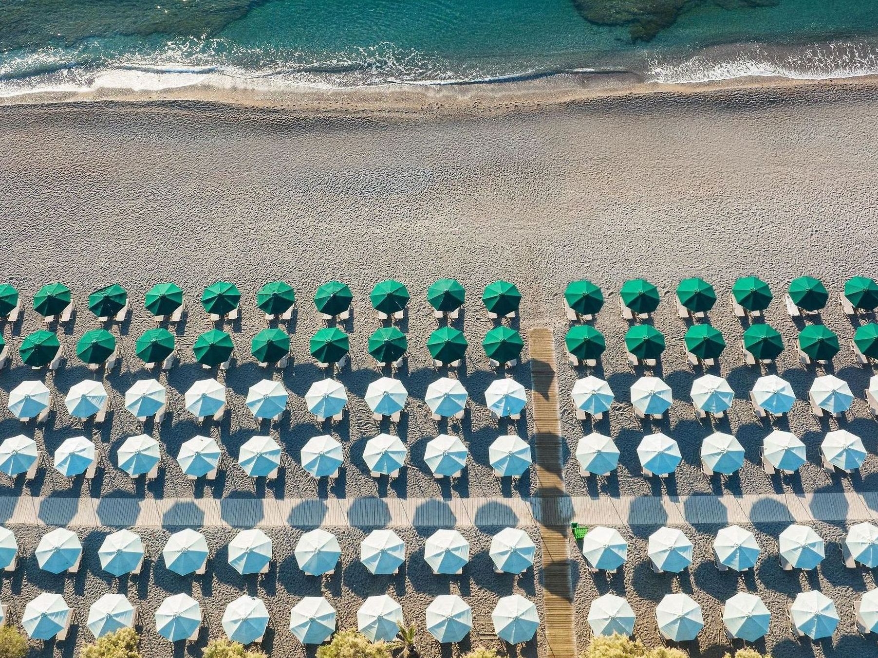 Piesočnato kamienková pláž priamo pri hoteli • ocenená Modrou vlajkou • pozvoľný vstup do mora • slnečníky, ležadlá a plážové uteráky (zdarma) • vodné športy (za poplatok)