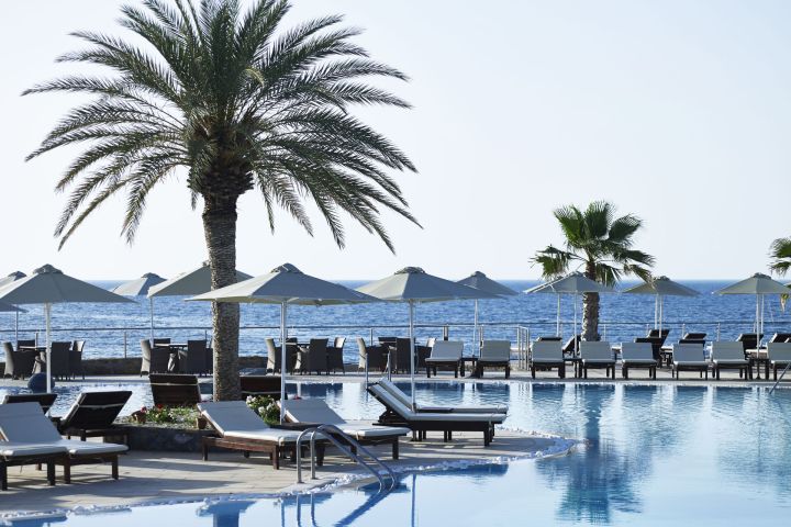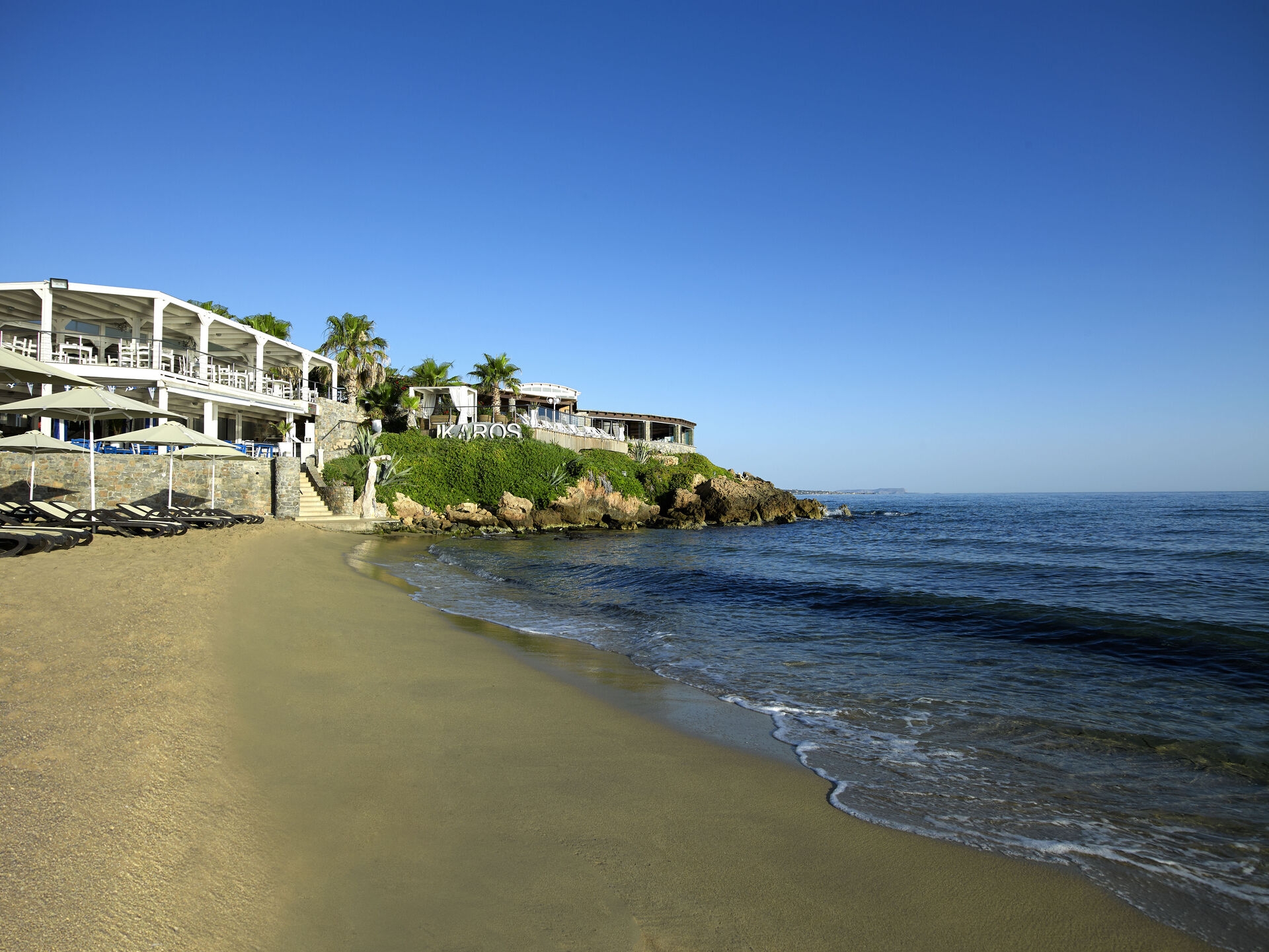priamo na súkromnej piesočnatej pláži Ikaros Beach • ležadlá, slnečníky, plážové uteráky na pláži zdarma • vodné športy ( za poplatok)
