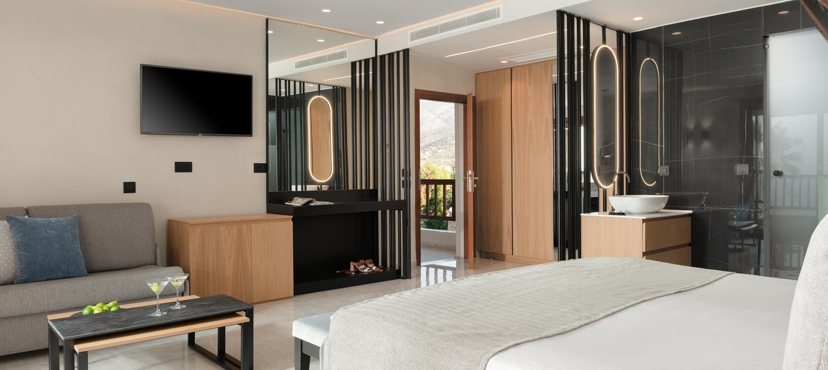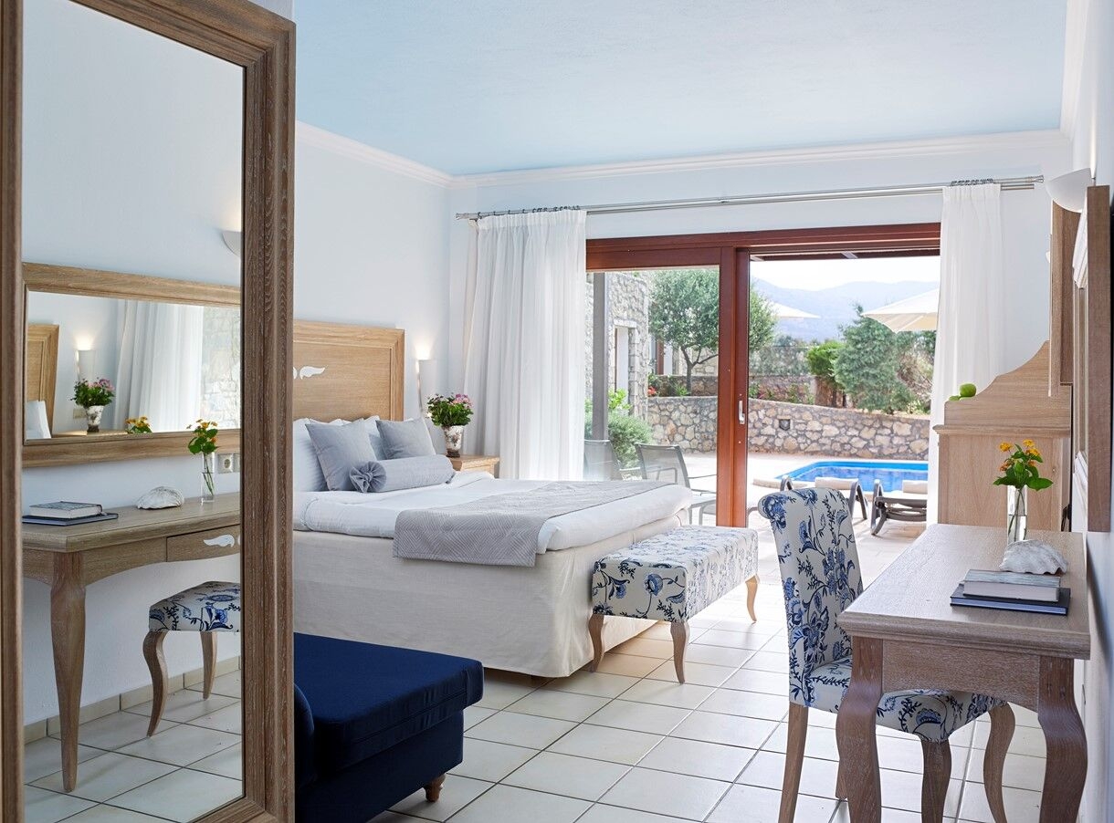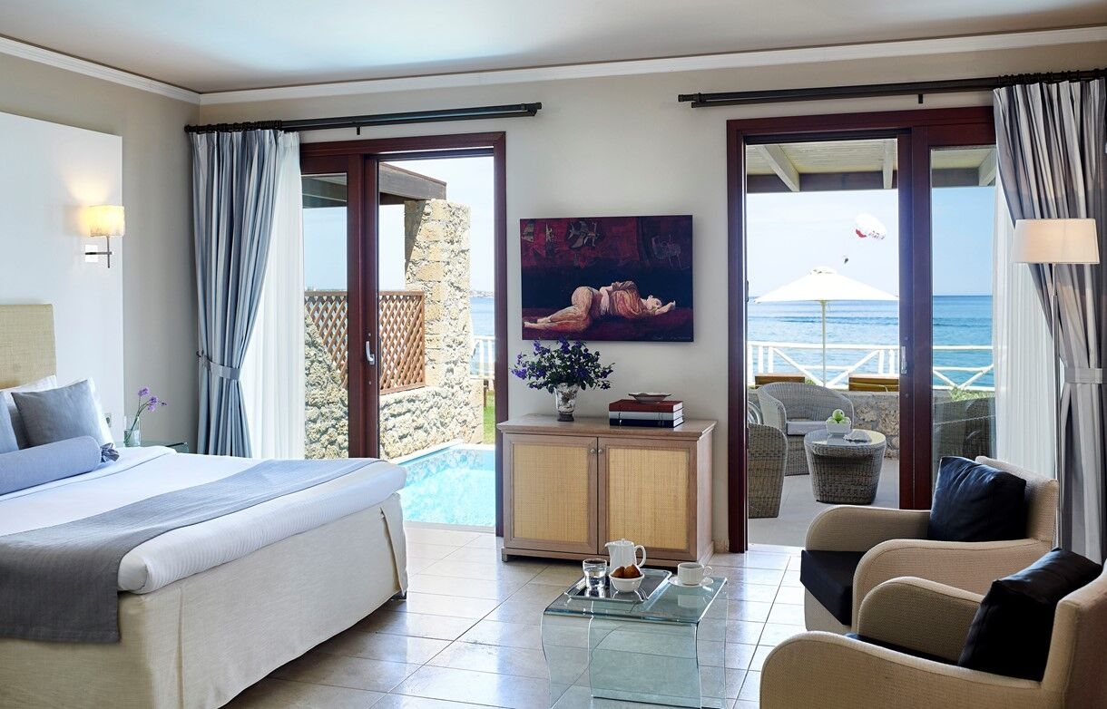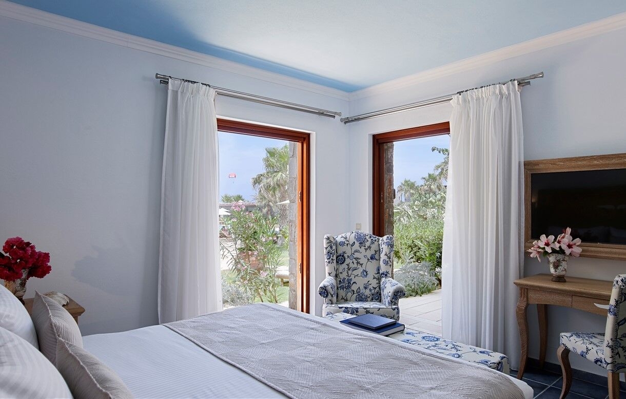 Classic Room (23 m2, pre 2-3 osoby, v hlavnej budove, výhľad do záhrady alebo na more) • Bungalow Classic garden view (25 m2, pre 2-3 osoby, výhľad do záhrady) • Bungalow Classic sea view (25 m2, pre 2-3 osoby, výhľad na more) • Bungalow Deluxe s privátným bazénom (33 m2, pre 3-4 osoby, jedna miestnosť, privátny bazén, výhľad do záhrady) • Bungalow Deluxe sea view (33 m2, pre 3-4 osoby, jedna miestnosť, výhľad na more) • Family Room (45 m2, pre 3-4 osoby, výhľad do záhrady) • Suite Sea View s privátnym bazénom (48 m2, pre 3-4 osoby, výhľad na more, privátny bazén) • Luxury Suite Sea Front s privátnym bazénom (48 m2, pre 2-4 osoby, priamo na pláži, privátny bazén) • Junior Suite Sea Front s privátnym bazénom (40 m2, pre 2-3 osoby, priamo na pláži, privátny bazén)