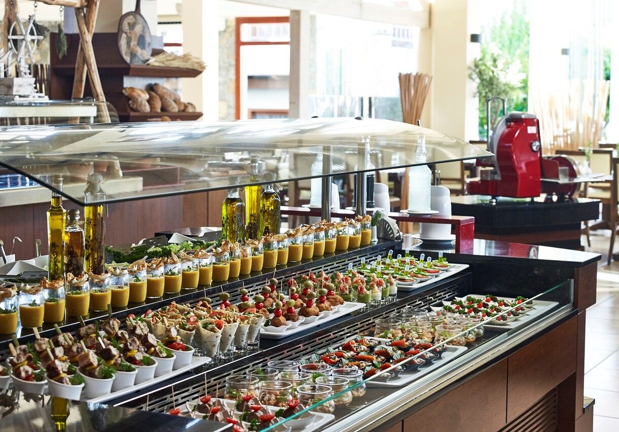 Olive Main Restaurant (hlavná, bufetová, možnosť gulten-free jedál a iných intolerancií na vyžiadanie) • Ayeri Mediterian Tastes (stredomorská kuchyňa, à la carte) • Kafenion Ouzeri (grécka kuchyňa, à la carte) • Veranda Prive (medzinárodná kuchyňa, à la carte) • Sunset Asian Restaurant (ázijská kuchyňa, à la carte) • En lefko (mix americkej kultúry a talianskej kuchyne, à la carte) • Privée (súkromne posedenie pre 4 až 6 ľudí)