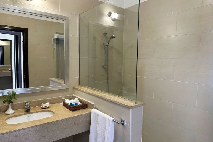klimatizácia • Wi-Fi (iba pre 2 zariadenia) • balkón alebo terasa • minibar (za poplatok) • chladnička • TV • sušič vlasov • trezor • telefón • žehlička so žehliacou doskou • kávovar a set na prípravu kávy • à la carte (za poplatok)