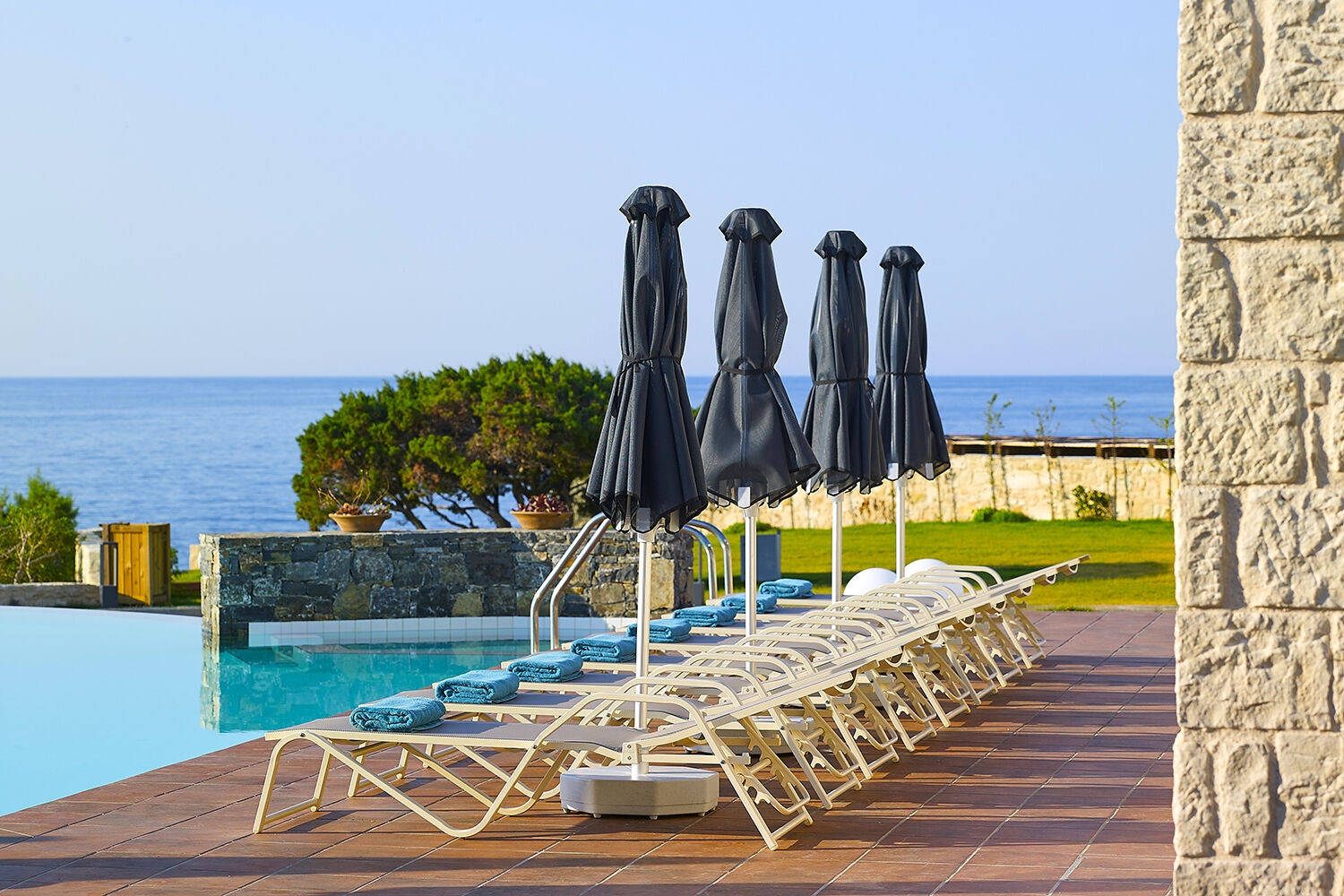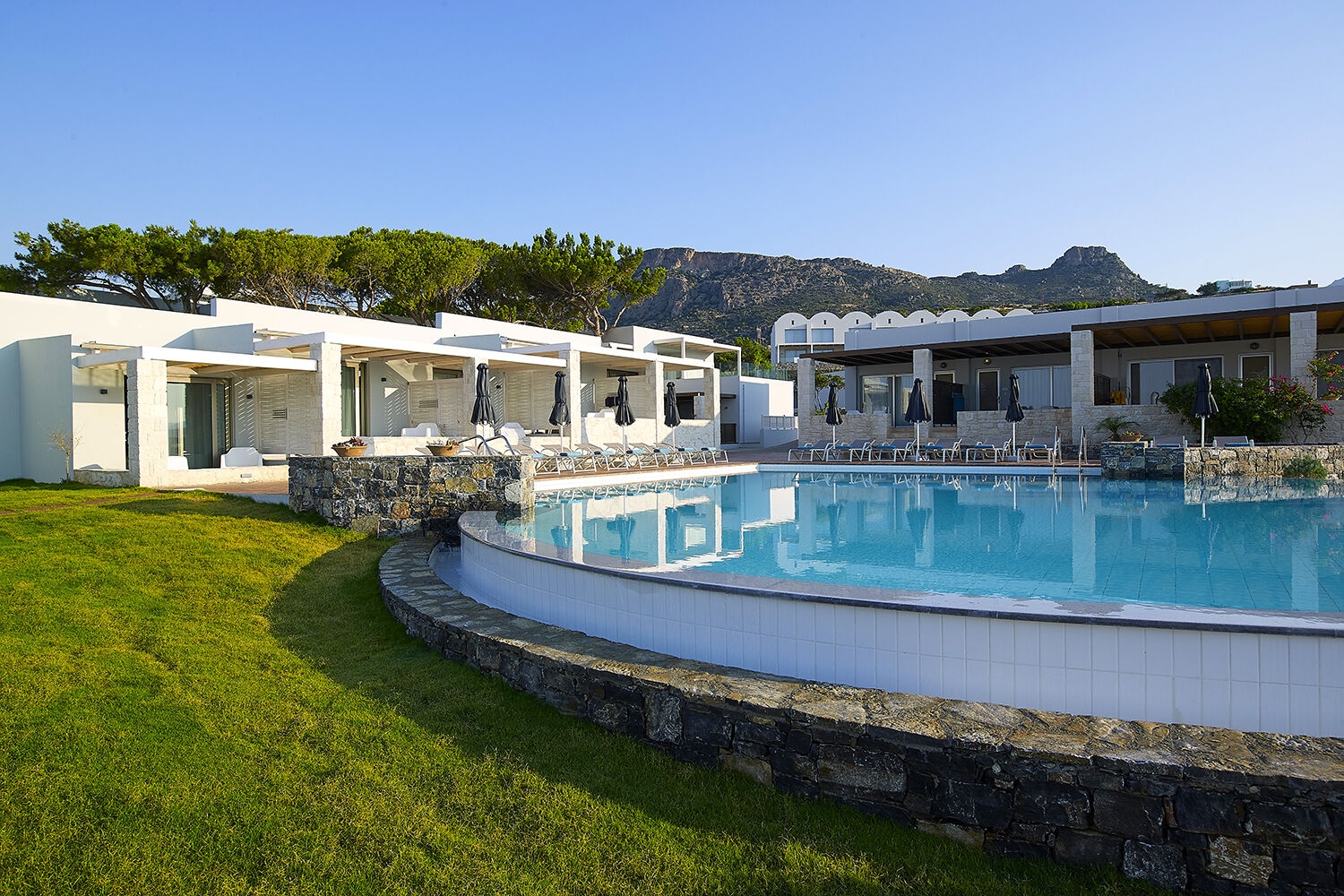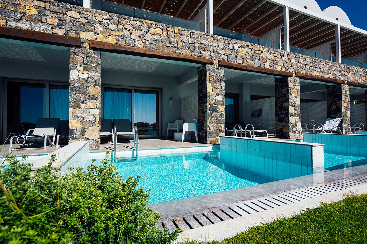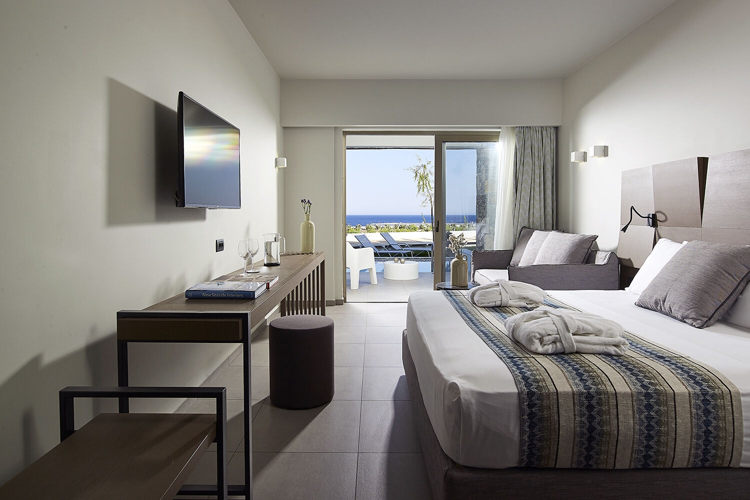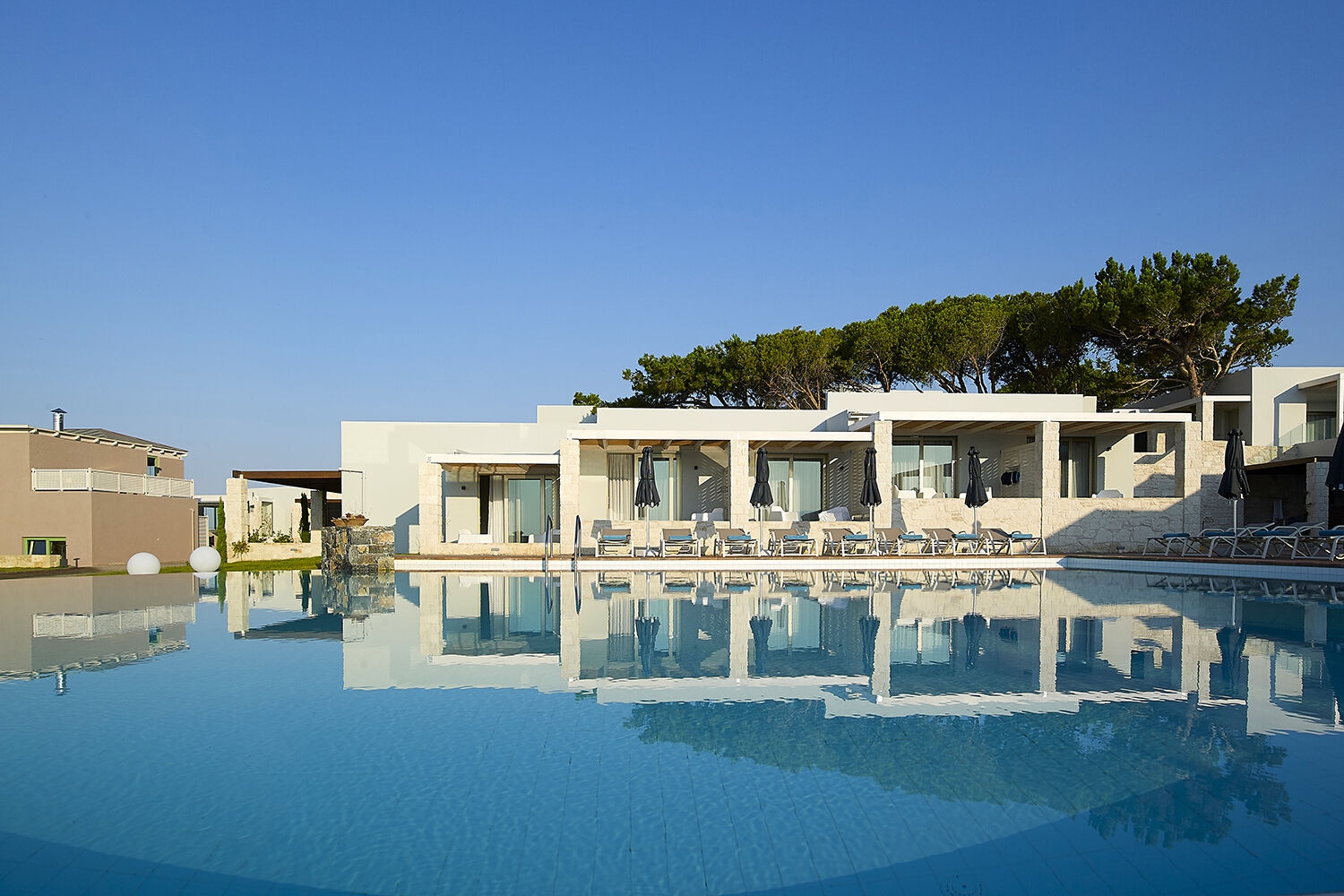 Štandardná izba s výhľadom na okolie (cca 30 m2, pre 2 osoby) • Izba s výhľadom na more (cca 30 m2, pre 2-3 osoby, výhľad na more) • Junior suita (46 m2, pre 2-3 osoby) • Izba so súkromným bazénom (cca 30 m2, pre 2-3 osoby, súkromný bazén) • Junior suita mezonet (cca 50 m2, pre 2-3 osoby, poschodový mezonet)