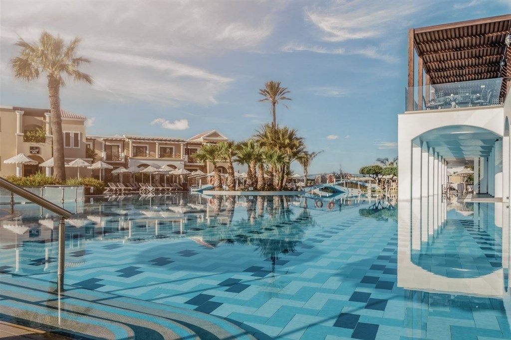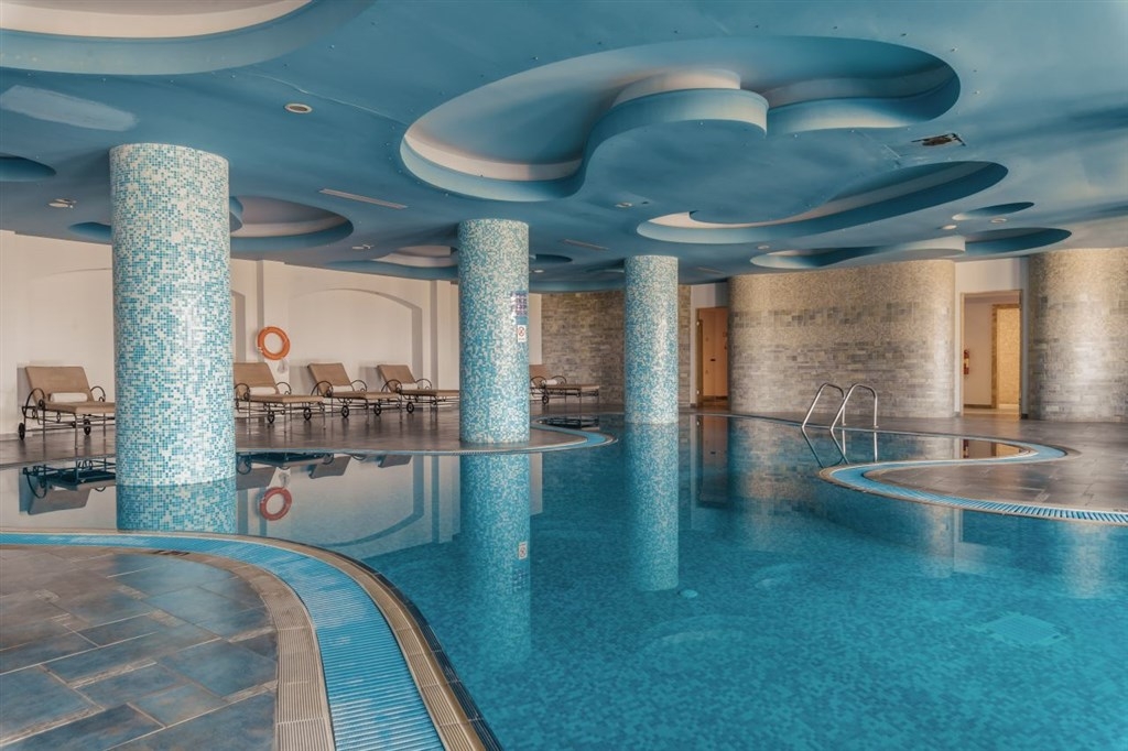 vstupná hala s 24 hodinou recepciou, Wi-Fi, klimatizácia, hlavná (bufetová), Italian (a la carte), Greek (a la carte), mexická (a la carte), ázijská (a la carte), za poplatok masáže a procedúry, wellness centrum, kozmetika, kaderníctvo, vonkajšie bazény, 1 vnútorný bazén, 3 tenisové kurty, minifutbal, plážový volejbal, stolný tennis, fi tnes centrum.