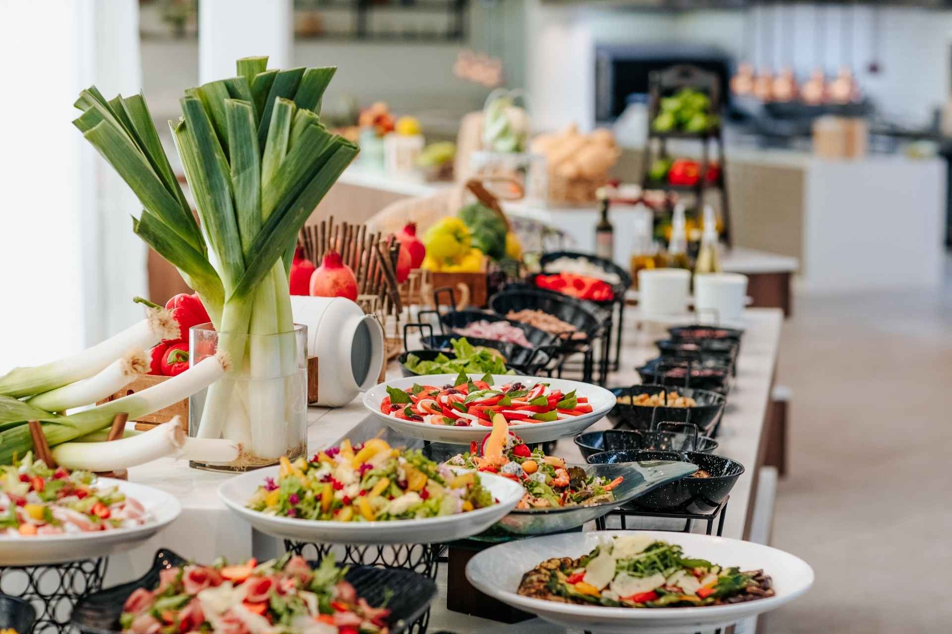Raňajky (07:00-10:00), obedy (12:30-15:00), večere (18:30-21:30) v hlavnej reštaurácií, vo Fiki Japanese Fusion alebo Pygmalion Burger reštaurácia (potrebná rezervácia), pool bar (10:00-01:00), lobby bar (09:00-01:00), pre deti: možnosť detského menu a detský bufet