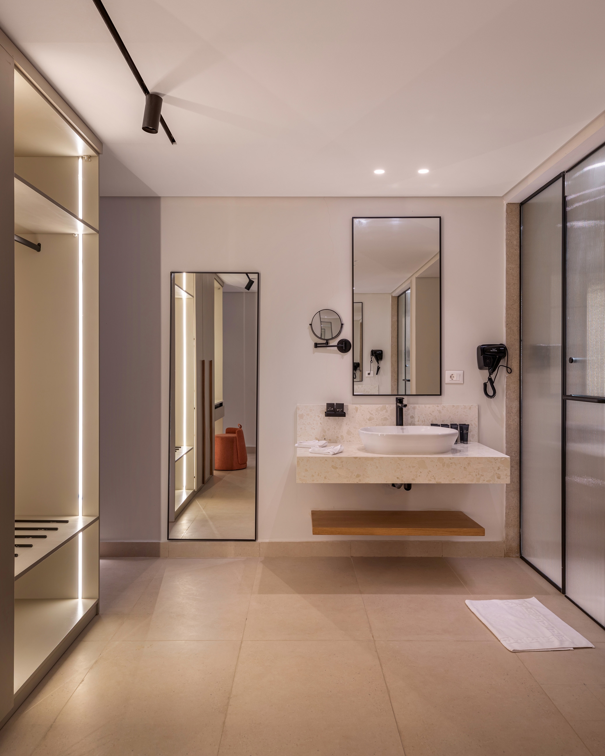 luxusne vybavené izby • klimatizácia • WiFi (rýchlejšie pripojenie za príplatok) • kúpeľňa s WC a bidetom • sušič vlasov • telefón • LCD TV • trezor (zdarma) • minibar (za poplatok) • set na prípravu kávy a čaju • župan a papuče • balkón alebo terasa