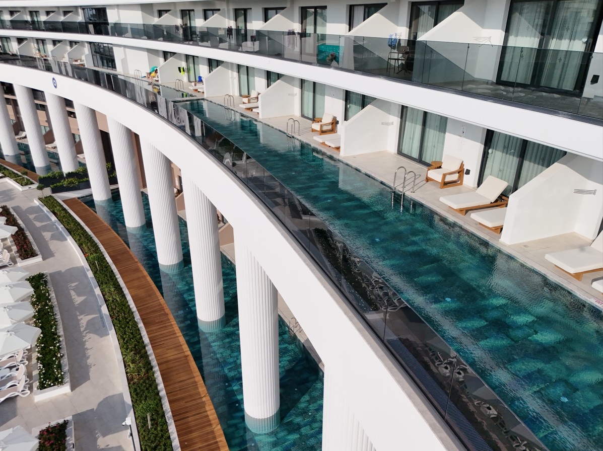 691 izieb • hotel pozostávajúci z hlavnej 9 poschodovej budovy • hlavná reštaurácia • 4 a la carte reštaurácie (za poplatok) • Wi-Fi (zdarma) • niekoľko barov • kino • vonkajšie bazény • detský bazén • vodné šmýkačky pre deti aj dospelých • turecké kúpele • sauna • fitness centrum • basketbal • futbal • tenisový kurt (otvorený od 1. 6.) • plážový volejbal • stolný tenis • šípky • minigolf • denné a večerné animácie • miniklub • živá hudba