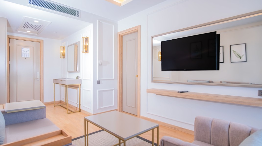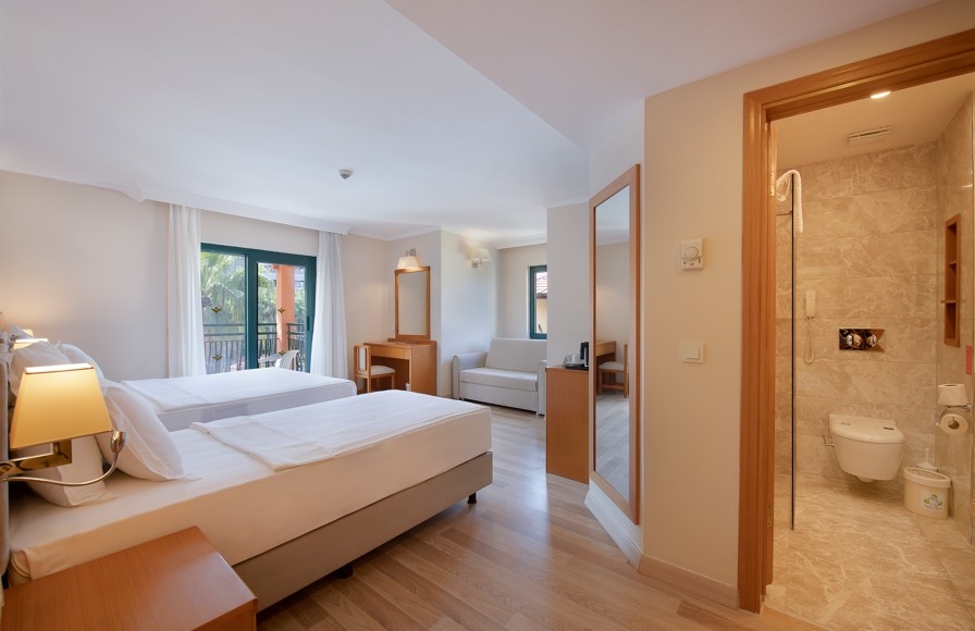 klimatizácia • sušič na vlasy • telefón • minibar (zdarma, denne dopĺňaný nealko nápojmi a pivom) • set na prípravu kávy a čaju • trezor (zdarma) • SAT LED TV • kúpeľňa s WC (vaňa alebo sprchový kút) • papuče • žehlička a žehliaca doska (na vyžiadanie) • Wi -Fi zdarma • laminátová podlaha • balkón