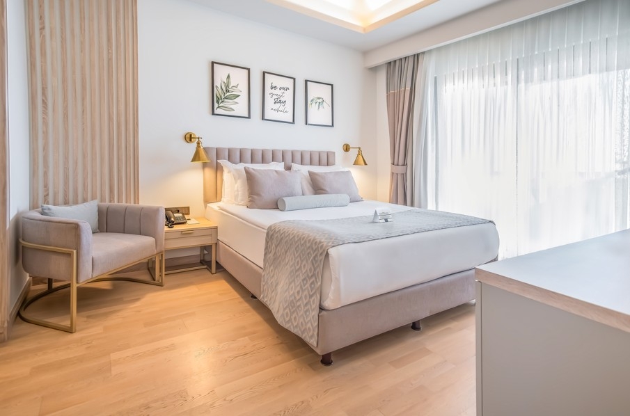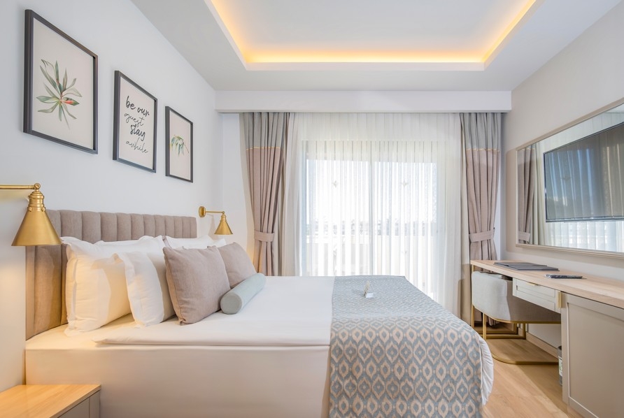 Štandardná dvojlôžková izba (25 - 28 m2, pre 2-3 osoby, manželská posteľ, možnosť prístelky, výhľad na okolie, balkón bočný alebo priamy výhľad na more) • Rodinná izba (29 m2, pre 2-4 osoby, manželská posteľ, možnosť 2 prísteliek, balkón výhľad na krajinu alebo do záhrady) • Suita (40 - 75 m2, junior/s výhľadom na more/na krajinu/s jacuzzi)