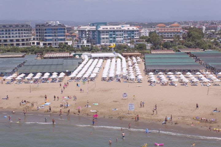 široká piesočnatá pláž, dlhá 55 m • pozvoľný vstup do mora • slnečníky a ležadlá na pláži zdarma • plážové osušky zdarma • plážový bar