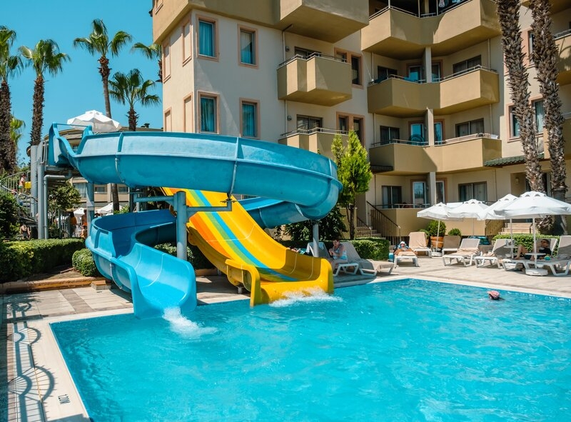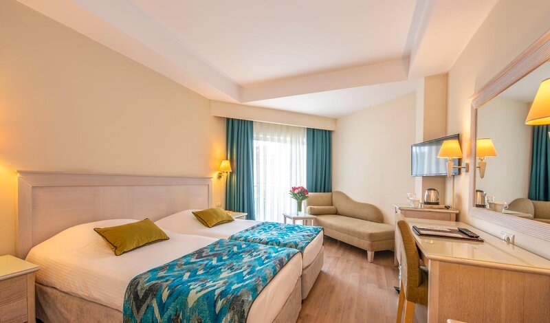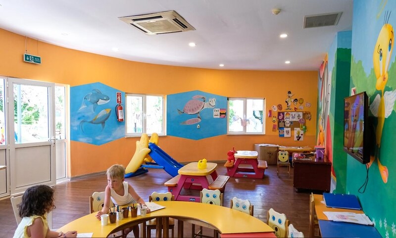 hlavná a vedľajšia budova • 212 izieb • reštaurácia • 3 a la carte reštaurácie (raz za pobyt zdarma, nutná rezervácia) • Wi-Fi (zdarma) • disco • bary • sauna • turecké kúpele • procedúry SPA centra za poplatok • biliard a bowling (za poplatok) • hlavný bazén • detský bazén • tobogany • miniklub • konferenčná miestnosť • za poplatok: minimarket • kaderníctvo
