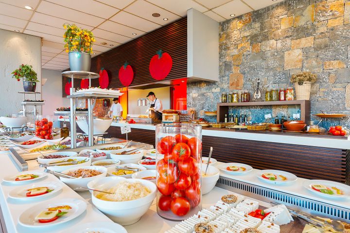 raňajky (07:30 - 10:00 h), obedy (12:30 – 14:30 h) a večere (19:00 – 21:30 h) formou bufetu • neskoré raňajky (10:00 - 11:00 h) • snacky (11:00 – 12:30 h a 15:30- 17:30 h) • káva • čaj • koláče • zmrzlina (11:00-18:00) • nealkoholické a alkoholické nápoje miestnej výroby (11:00 - 23:00 h)