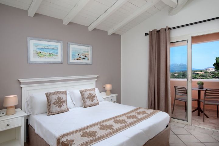 Štandardné izby zariadené v typickom sardínskom štýle (20 m², dvojlôžkové alebo štvorlôžkové, kúpeľňa, dvojlôžkové s veľkým súkromným balkónom, štvorlôžkové s francúzskym balkónom, štvorlôžková izba disponuje manželskou posteľou a poschodovou posteľou (max. obsadenie 2 dospelé osoby a 2 deti do 12 rokov) • Rodinná izba (40 m², 2 prepojené izby, 2 kúpeľne, max. 4 dospelé osoby) • Premium izba (20 m², situované v budove Colonna Village, zariadené podobne ako štandardné izby, max. 3 dospelé osoby, balkón, výhľad na záliv)