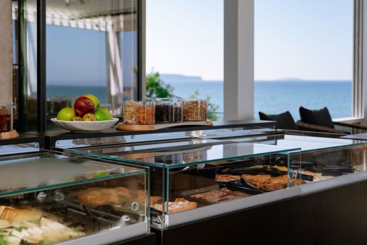 Deluxe Double (22 m2, pre 2 osoby, výhľad na more) • Junior Suite (30 m2, pre 2-3osoby, výhľad na more) • Junior Suita s jacuzzi (32 m2, pre 2-3osoby, výhľad na more) • Suite 2-bedrooms, privátny bazén (32 m2, pre 2-4 osoby, výhľad na more) • Suite Maisonette 2-bedrooms, privátny bazén (40 m2, pre 2-4 osoby, výhľad na more)