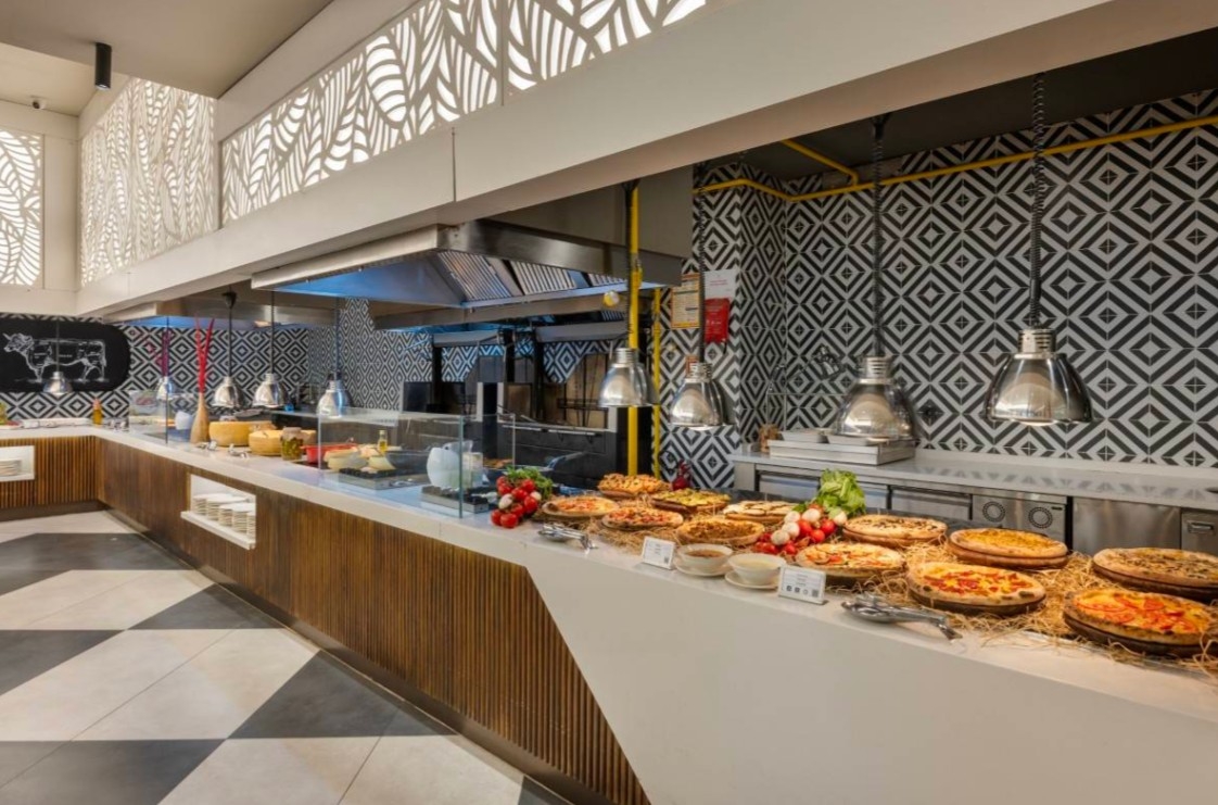 hlavná reštaurácia • snack reštaurácia • a la carte reštaurácia RoofTop Lounge (nutná rezervácia vopred) • 24h lobby bar • beach bar • pool bar • lounge bar (od 16 rokov)