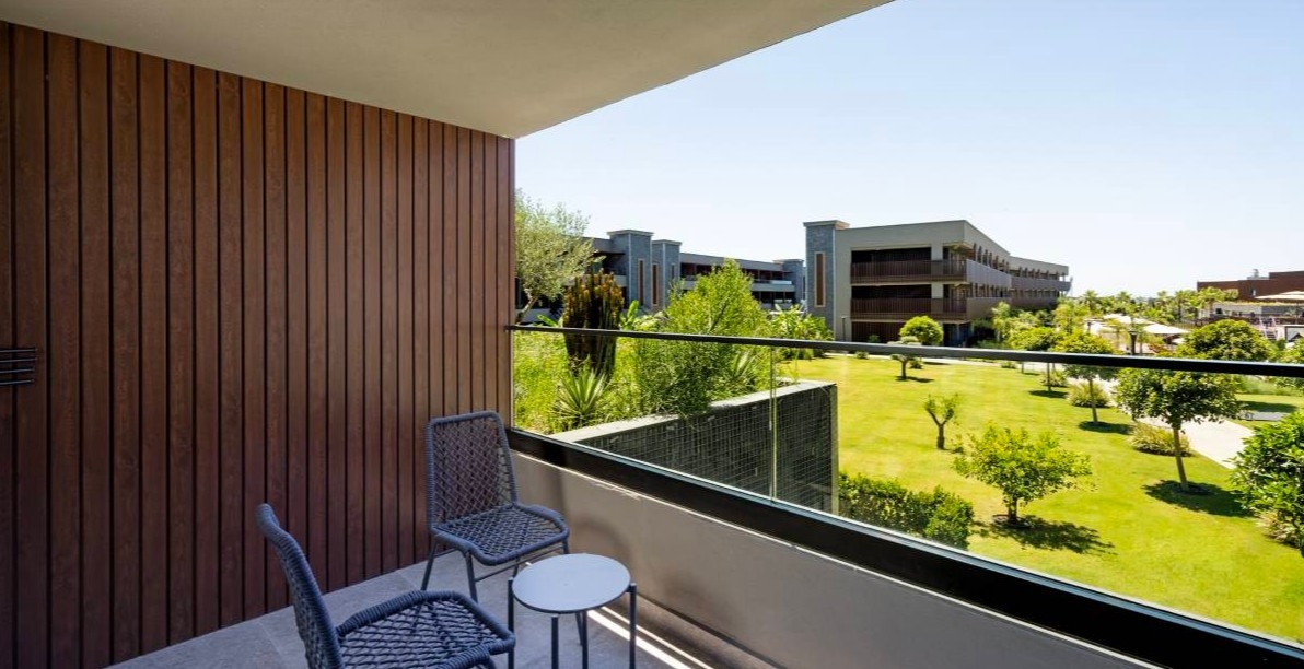 Štandardná izba s výhľadom na bazén (31 m2, manželská posteľ alebo dve oddelené lôžka, rozkladacia pohovka, výhľad na bazén, balkón alebo terasa, max. 2 dospelé osoby a 1 dieťa)
