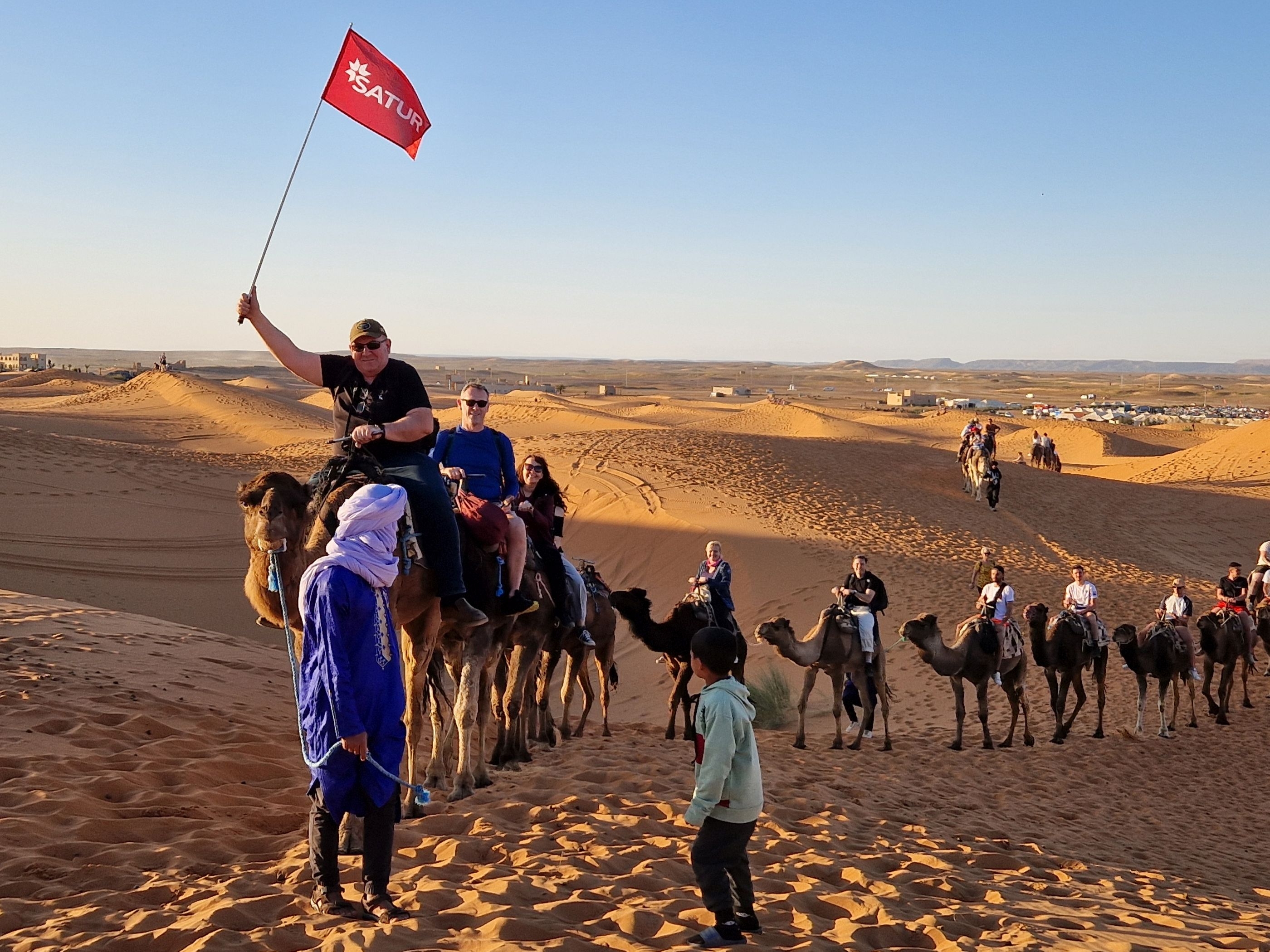 Opúšťame Zagoru a cez Alnif sa presúvame do Merzougy. Merzouga je posledná dedinka pri najvyšších dunách Erg Chebbi, ktoré dosahujú v niektorých častiach výšku cez 200 metrov. Záver dňa si vychutnáme pri západe slnka v Erg Chebbi. Nekončiace dunové more je neuveriteľne fotogenické. Noc strávime priamo kúsok od dún v púštnom kempe Palmeras Y Dunas, pri pozorovaní hviezd.