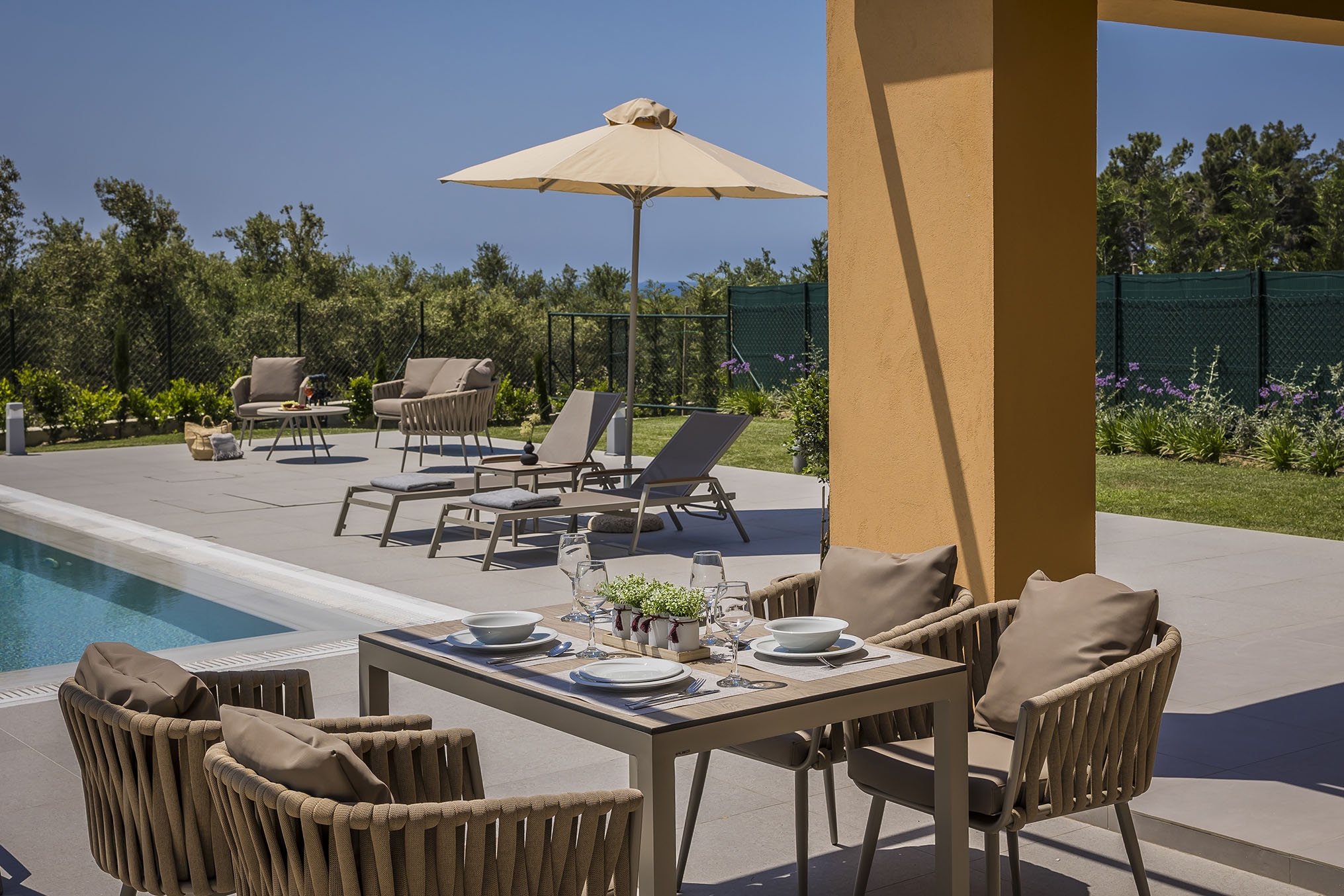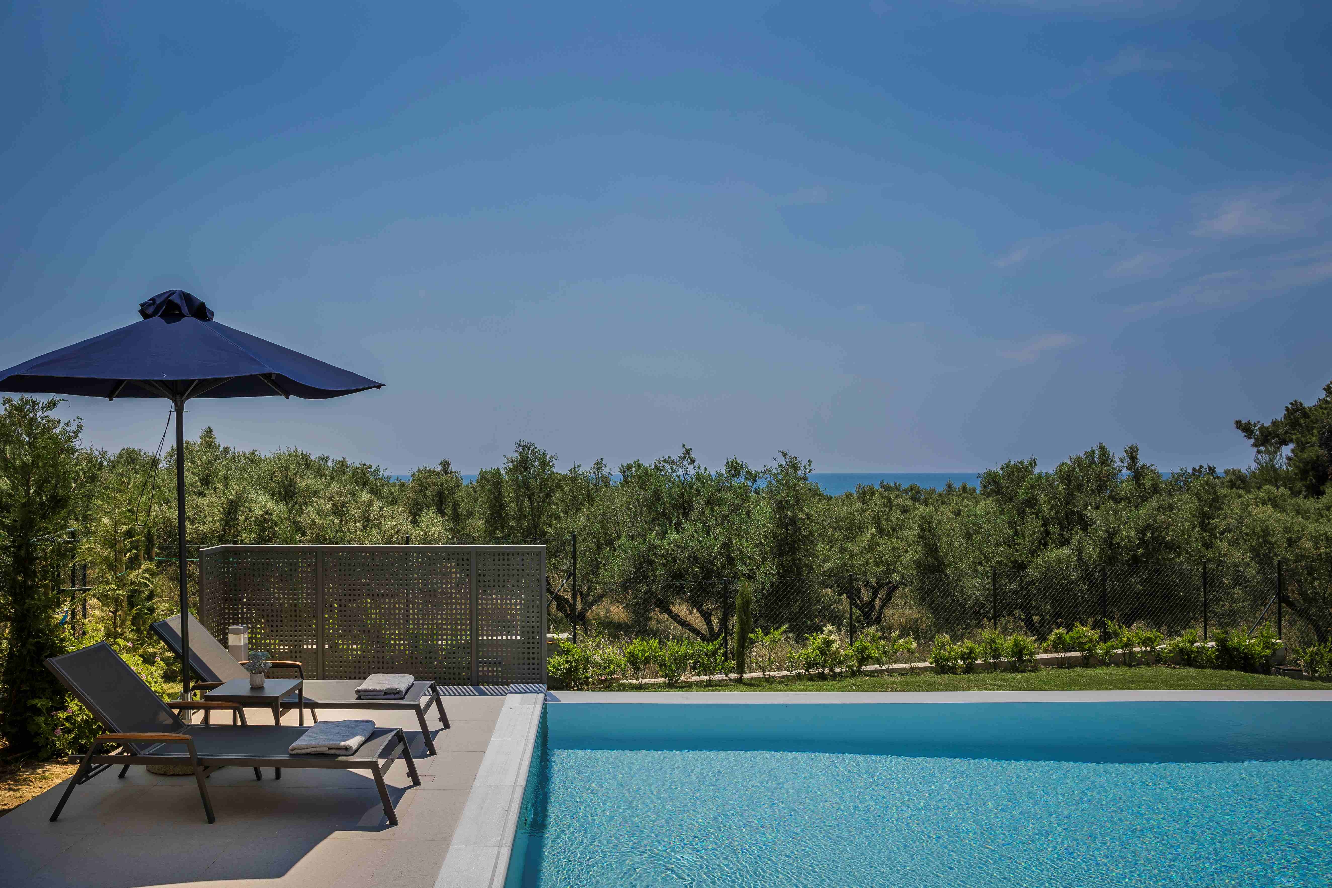 Villa Sunset (110 m2, pre pre 2-6 osôb, 3 spálňe, 3 kúpeľne, kuchyňa, 30 m2 privátny bazén, súkromná záhrada s trávnikom a terasou)