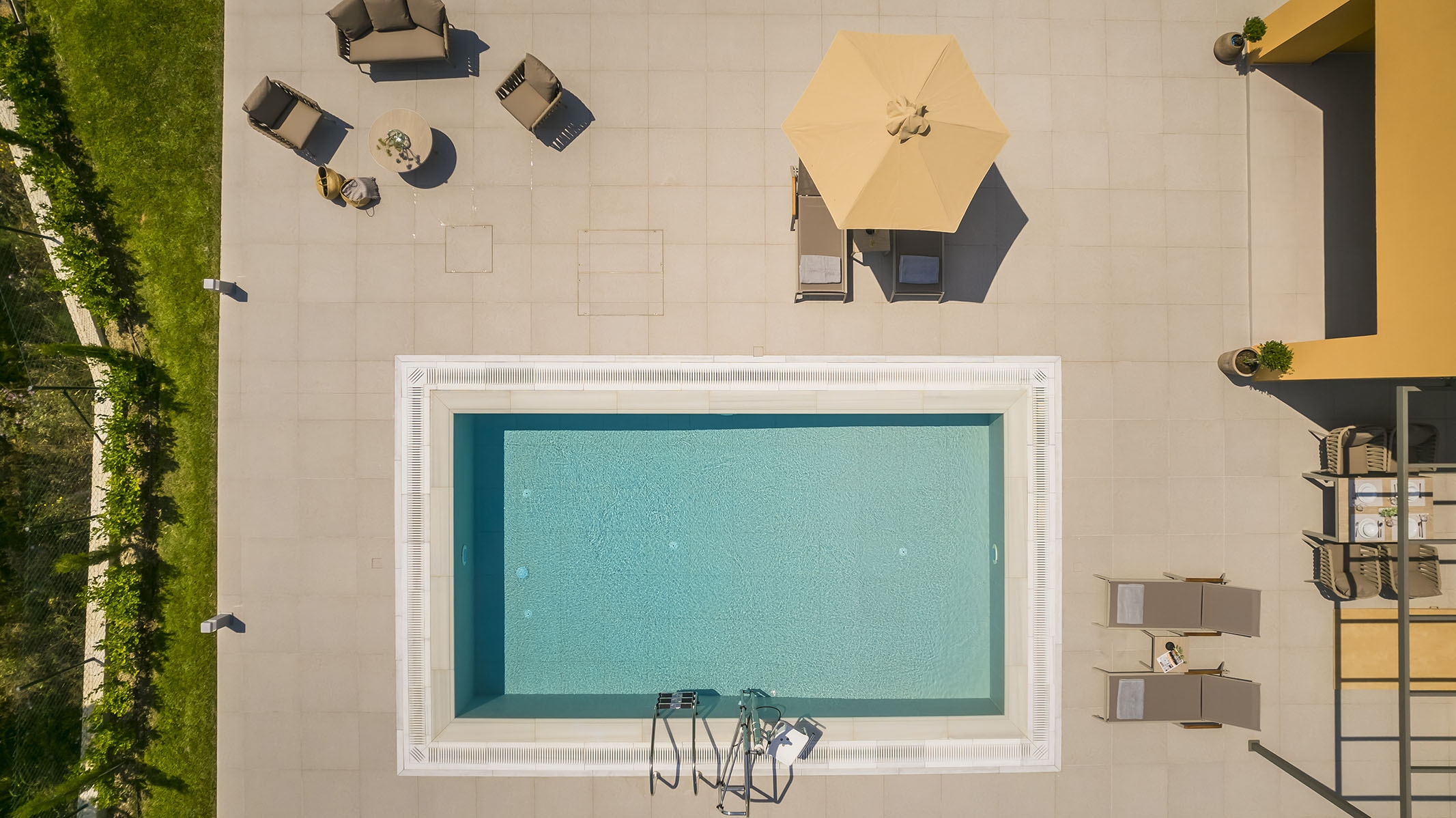 Suita Sea Harmony (42 m2, pre 2 osoby, 1 spálňa, kuchyňa, 18 m2 privátny bazén, súkromná záhrada s trávnikom a terasou)
